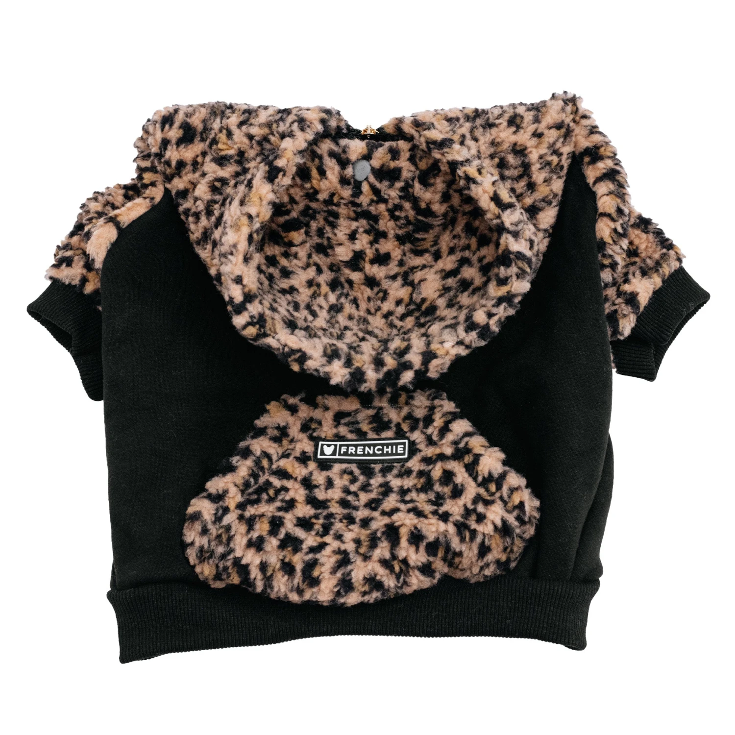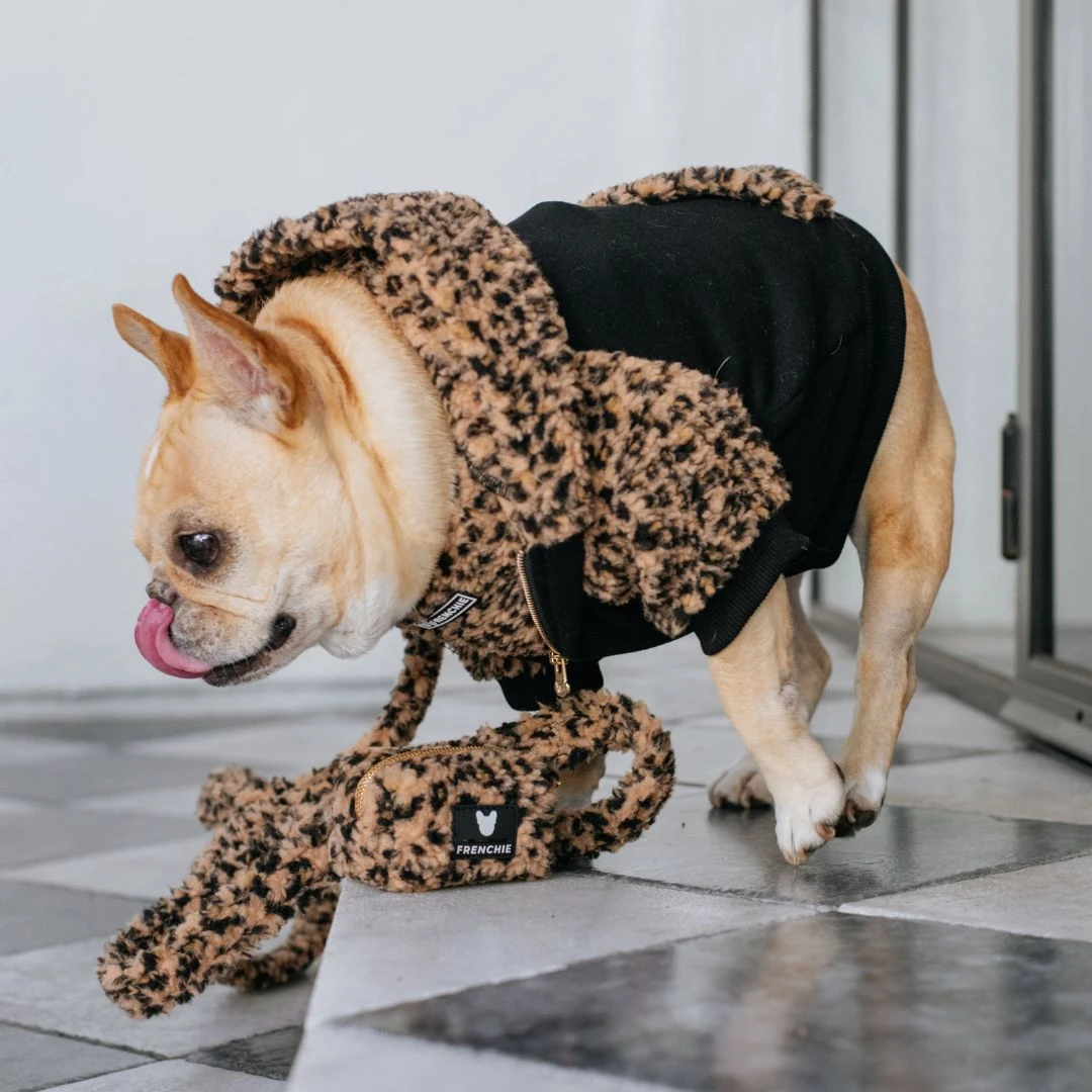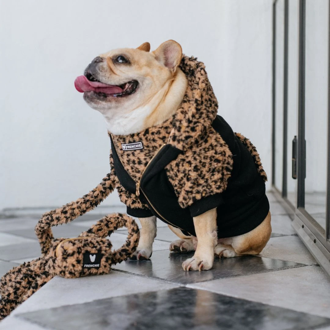 Our custom-sized fit is perfect for Frenchies & small-medium breeds. Polyester fabric is breathable and moisture-wicking, plus it looks fabulous! Dual-lined hood with secure snap feature, front zipper and leash-harness integration slit. Stash pocket in the back for treats or whatever else your pup needs. Soft and comfortable with a naturally water-resistant finish.