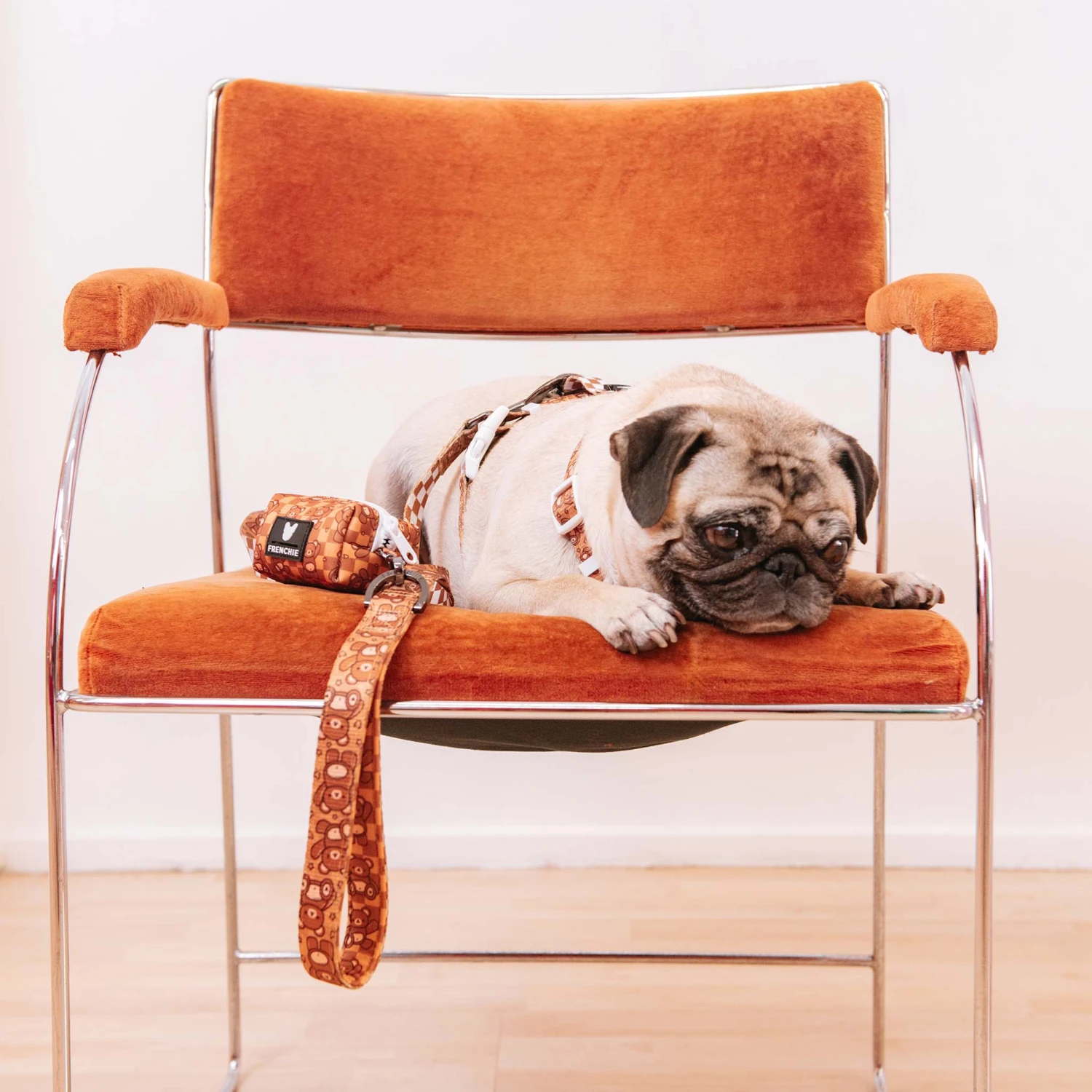 Frenchie Strap Harnesses feature vibrant dual printed polyester webbing strap, black accessory components and heavy duty branded buckle. They are one size fits most.
